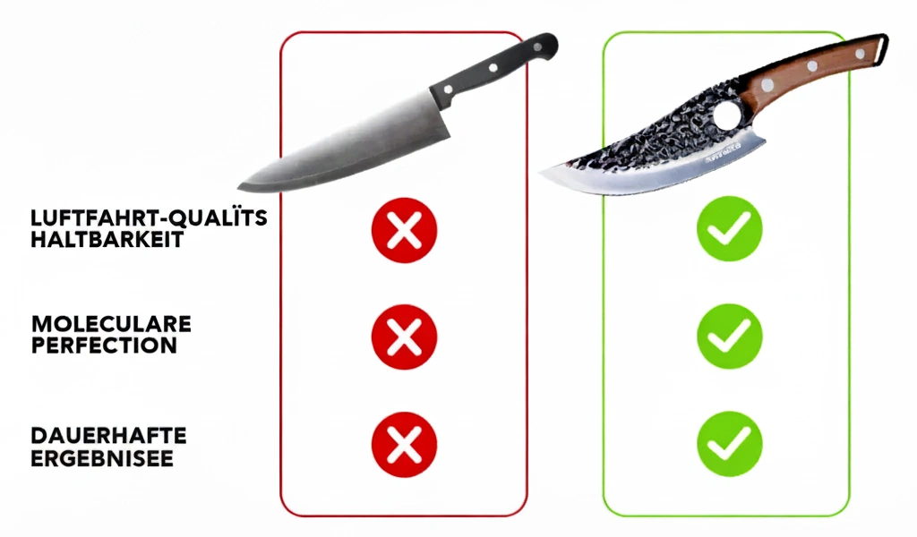Dann entdeckte ich ein Messer, das mit einem fortschrittlichen Härtungsverfahren hergestellt wurde, das normalerweise den härtesten Werkzeugen vorbehalten ist. Als ich es zum ersten Mal benutzte, schnitt ich eine Tomate papierdünn – völlig mühelos. Plötzlich fühlte sich Kochen leicht an… ja, sogar spaßig.